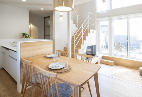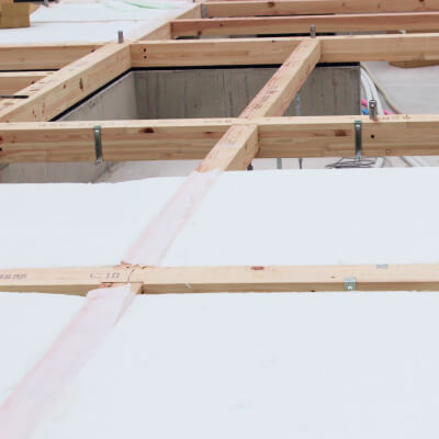 床下に断熱材を敷き込むことで、足元からの冷えを防ぎ、冬でも素足で過ごせる快適な空間に。